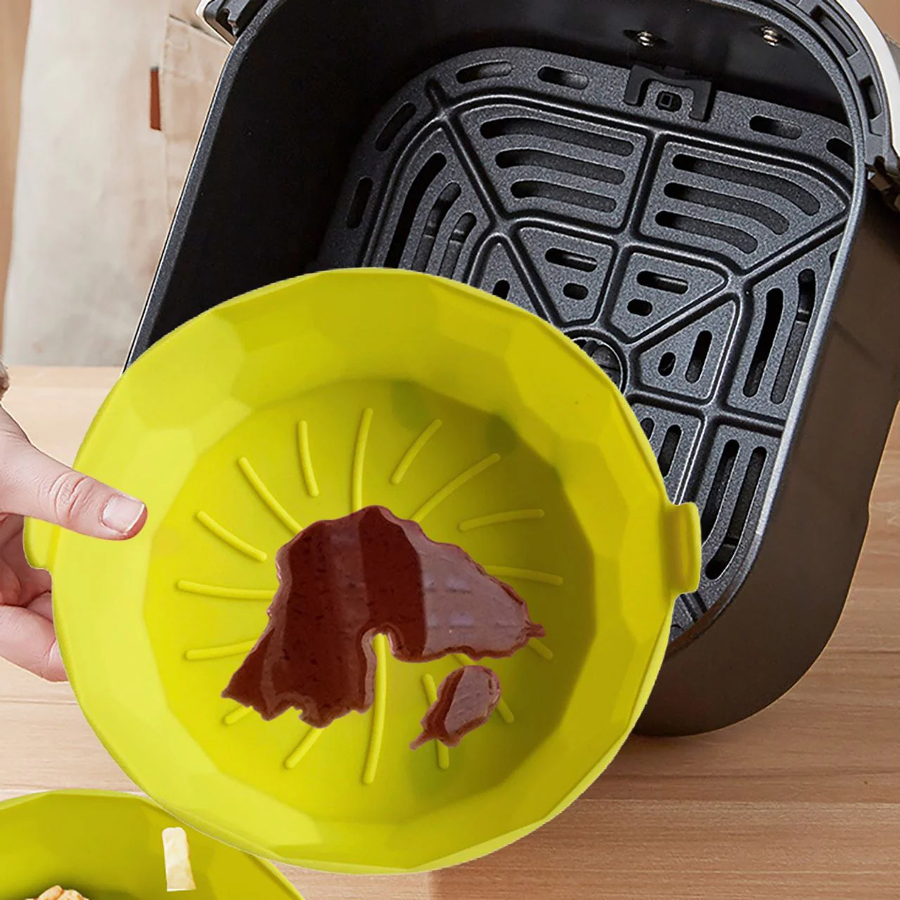 Con el nuevo molde para freidora de aire SILICON MAX no estregas y desgastas tu equipo por los residuos de comida que se pegan 😎.